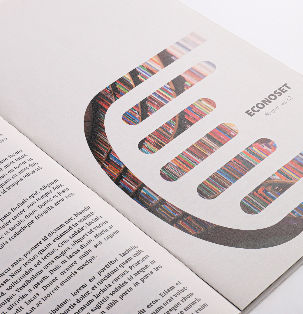 ECONOSET to powlekany, matowy papier publikacyjny o wysokiej białości i nieprzezroczystości.