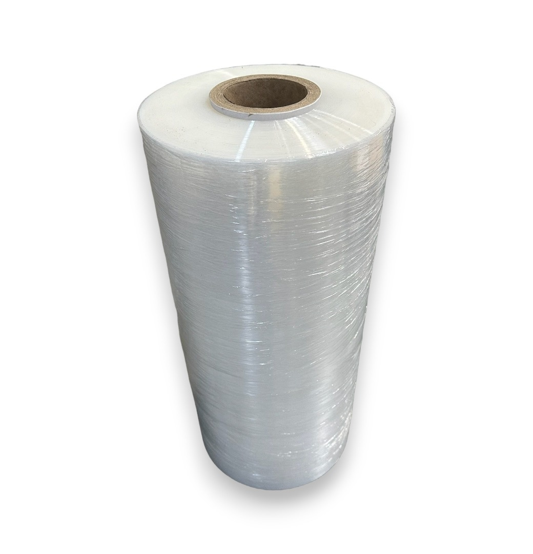 Maszynowa folia stretch charakteryzuje się większą ilością nawiniętą na rolkę niż ma to w przypadku ręcznej folii stretch, która zwykle nie przekracza 3 kilogramów folii na rolce. Maszynowa folia stretch oscyluje w granicach 15- 19 kilogramów folii na jednej rolce.