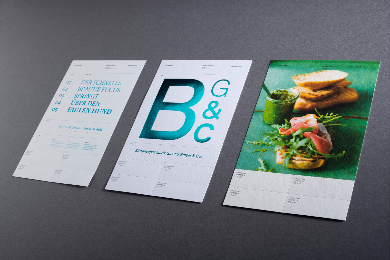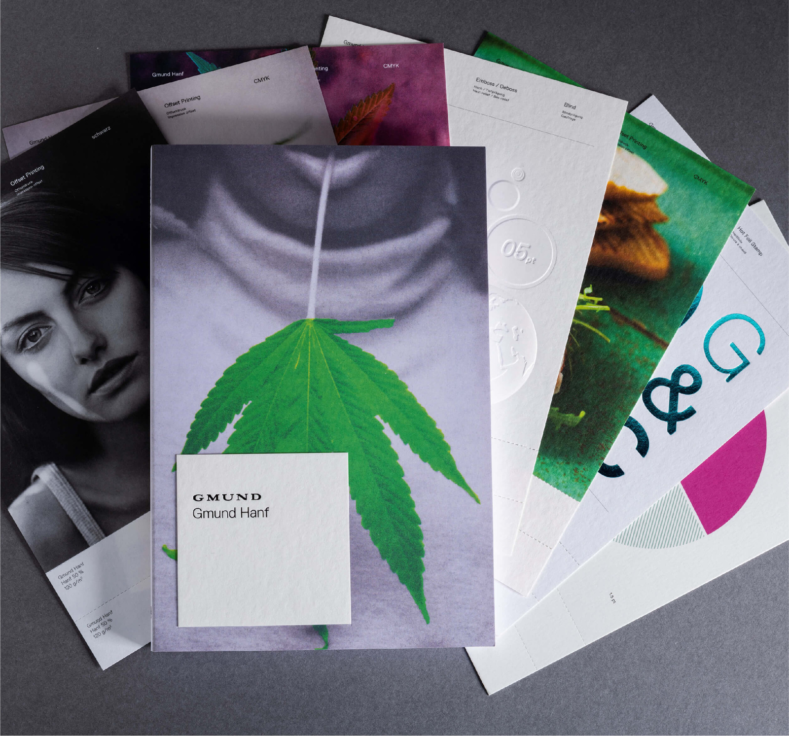 W skład kolekcji oprócz Gmund Hanf 100% wchodzi również papier Gmund Hanf 50%, który zawiera włókna papierowe, pochodzące z recyklingu oraz Gmund Hand 10%, który jest wykonany z czystej masy celulozowej. Wszystkie papiery z kolekcji wyprodukowane są bez udziału barwników.