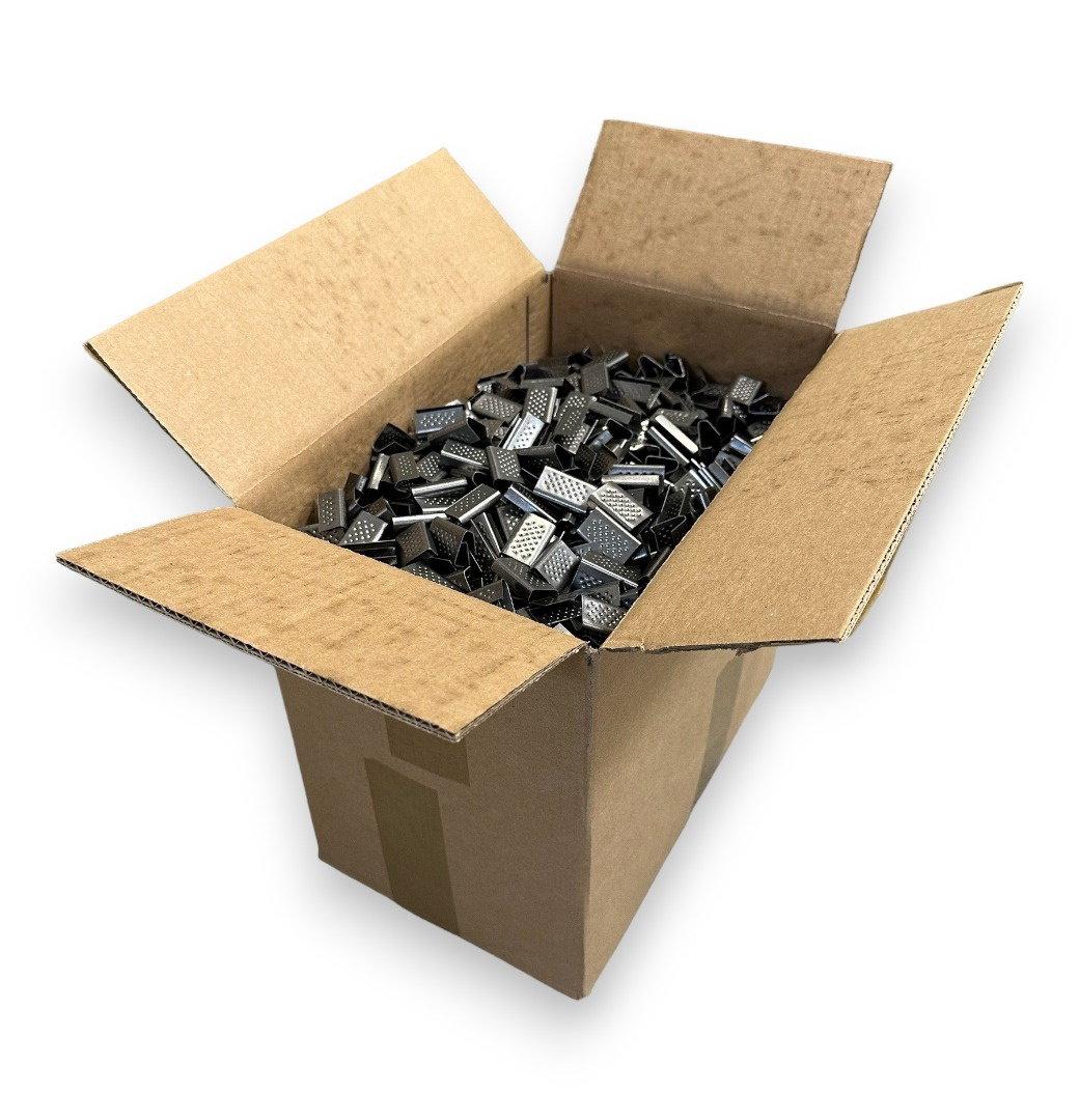 - Zapinka wykonana z odpowiednio grubej i twardej blachy o szerokości 16 mm. Ilość sztuk w opakowaniu: 2500.
